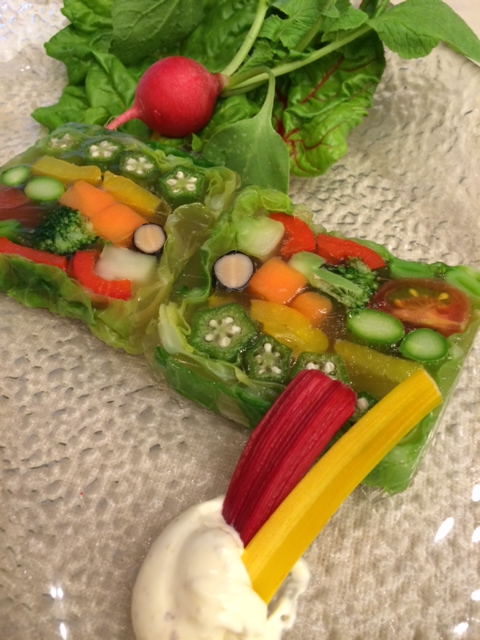 調理長主催で料理コンテストを開催。参加は当館厨房スタッフ9名。 テーマは【夏の洋皿】。写真は斉藤君の一品です。夏の献立に登場する かもしれません。乞う期待です。
