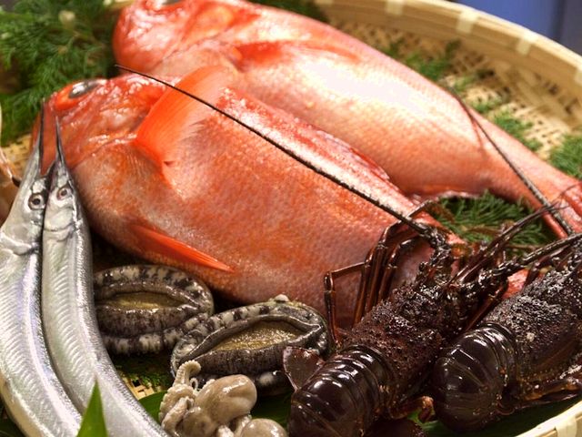 季一遊の人気NO.1プラン【海席遊膳献立】になります。 伊勢海老はお造りで。旬の刺身と共に。 定番の金目鯛チョイスは【煮付け】か【唐揚げ】で。。
