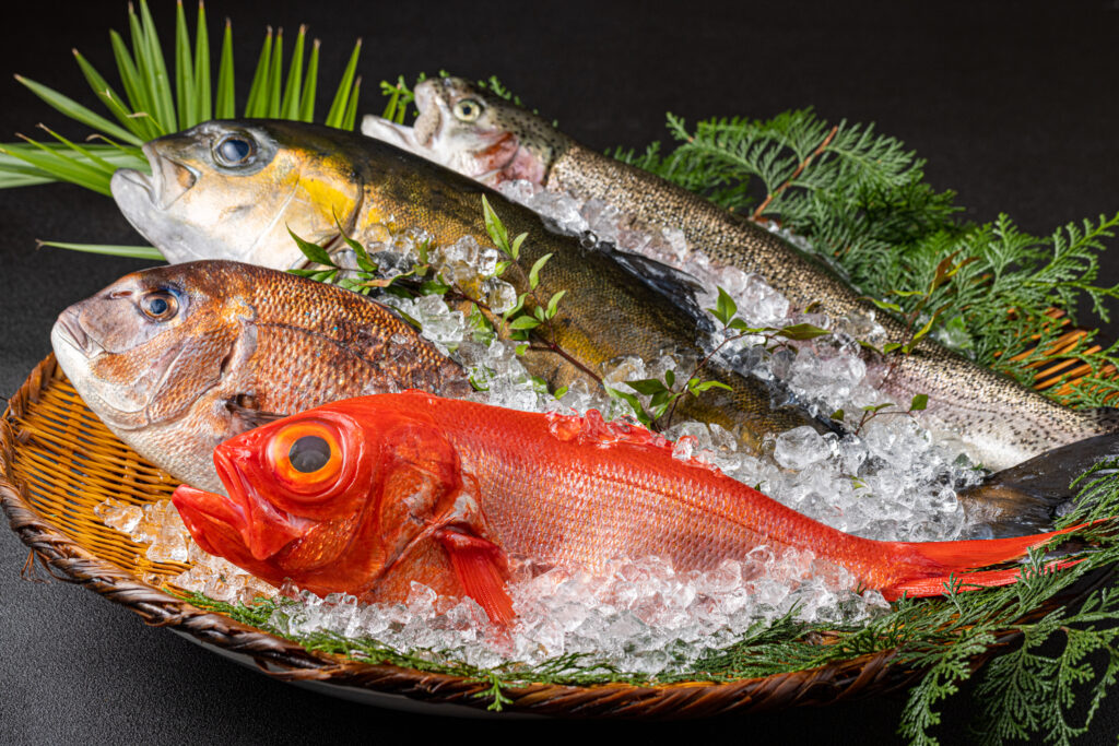 季一遊の人気NO.1プラン【海席遊膳献立】になります。 伊勢海老はお造りで。旬の刺身と共に。 定番の金目鯛チョイスは【煮付け】か【唐揚げ】で。。 -
