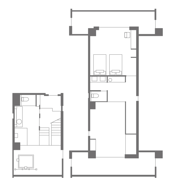 メゾネット仕様:客室4階(最上階)/露天風呂3階(山側)