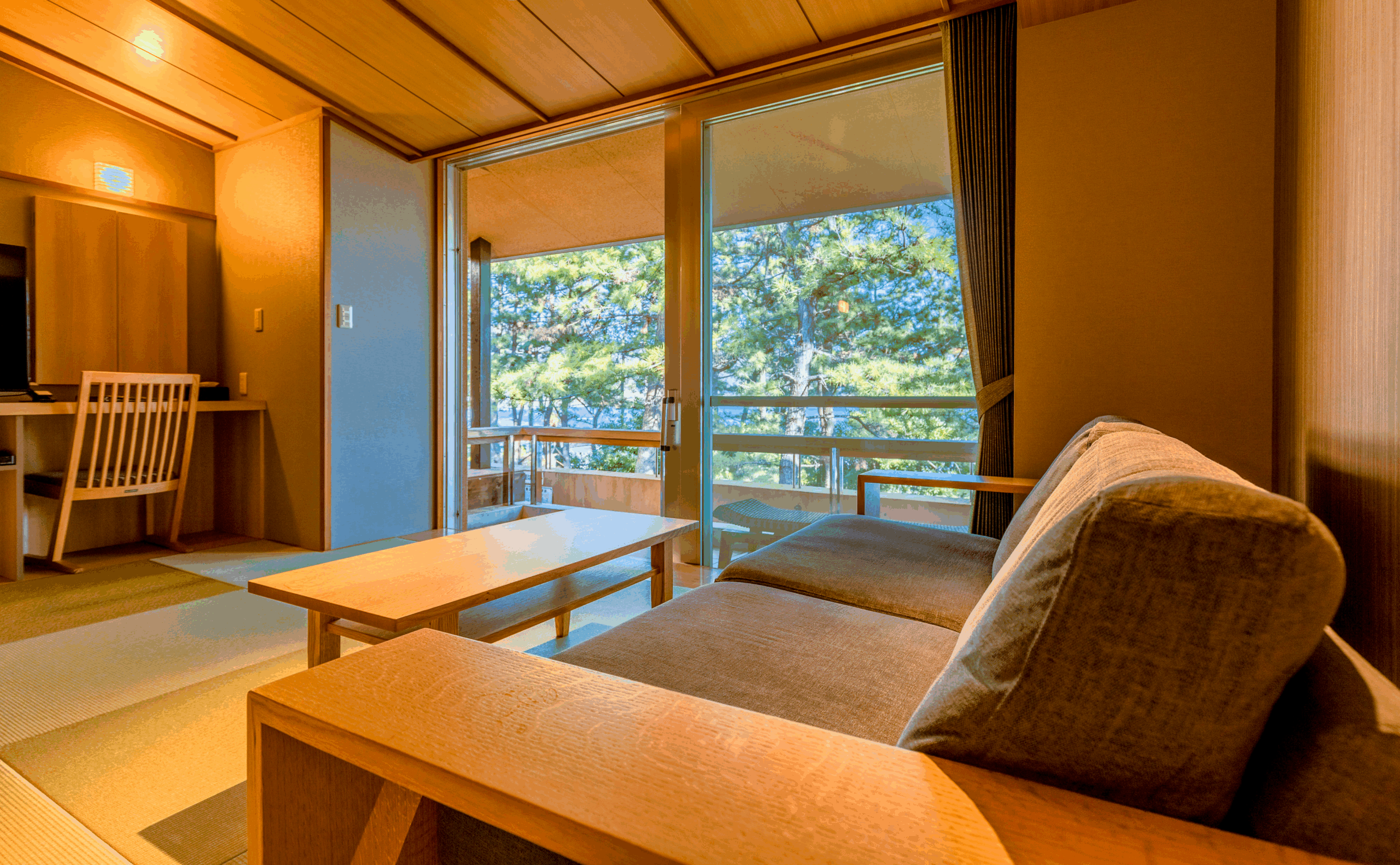 バルコニーや温泉を引いた露天風呂からは南伊豆の風や鳥の声、