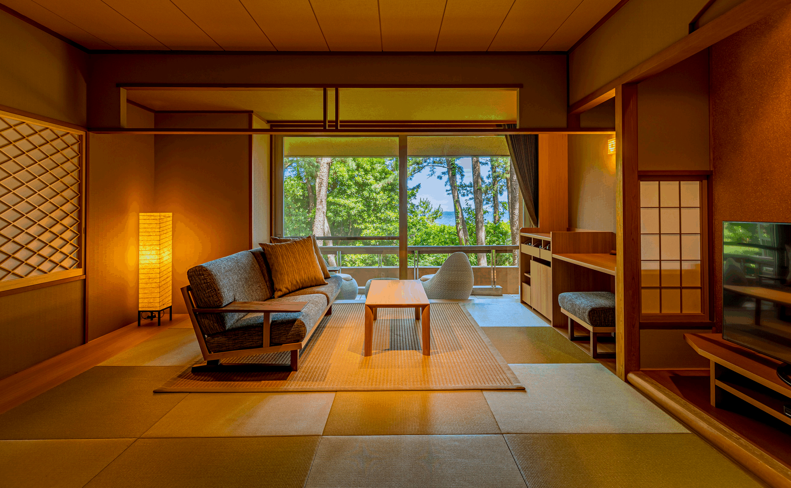 和の趣きは崩さず、ナチュラルな色合いで統一された居心地の良い客室に仕上がりました。
