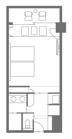 ●ツインベッド(セミダブル)+リビング+シャワーブース