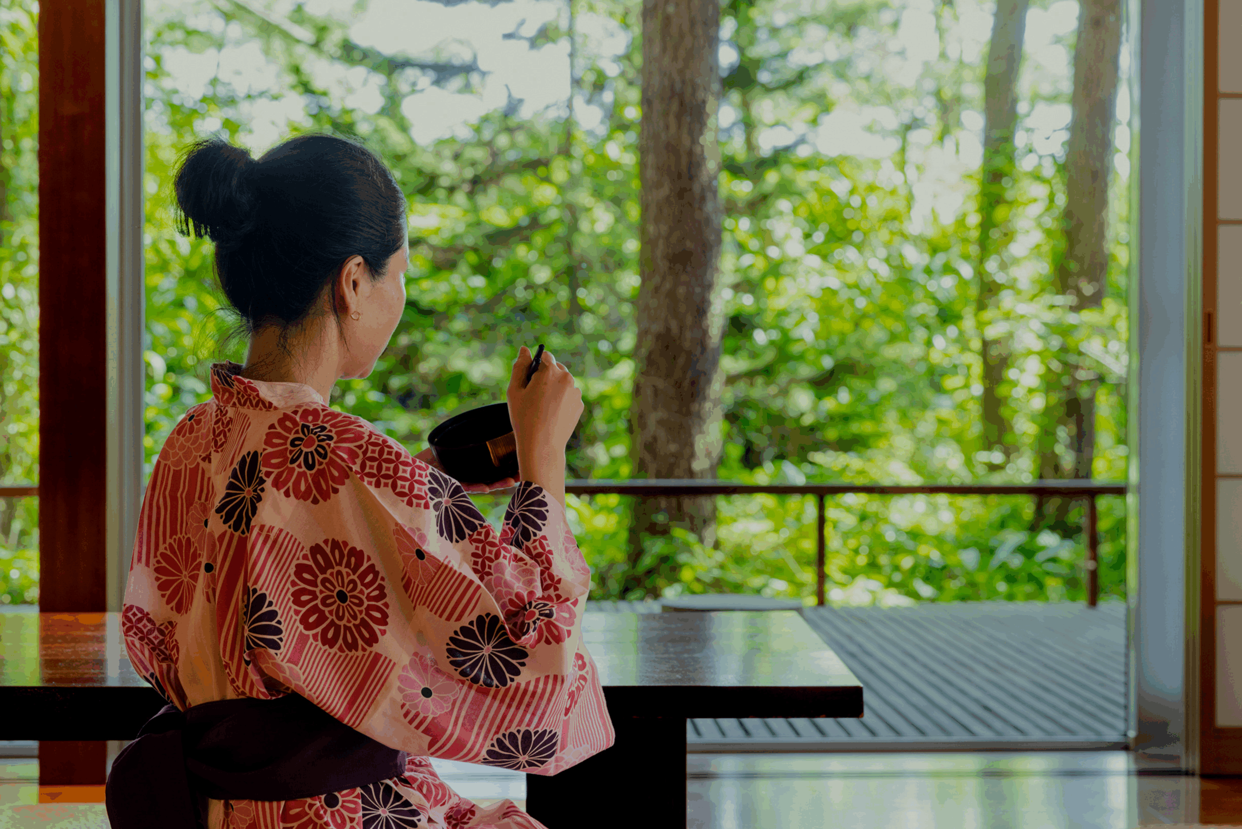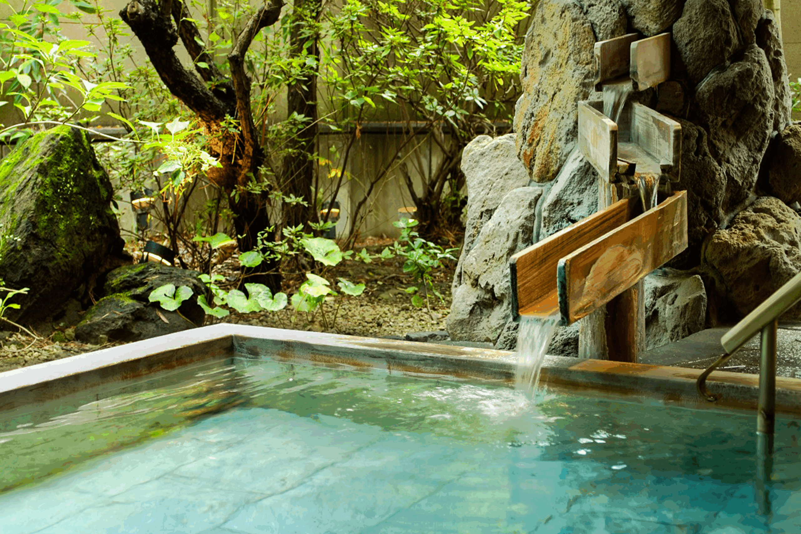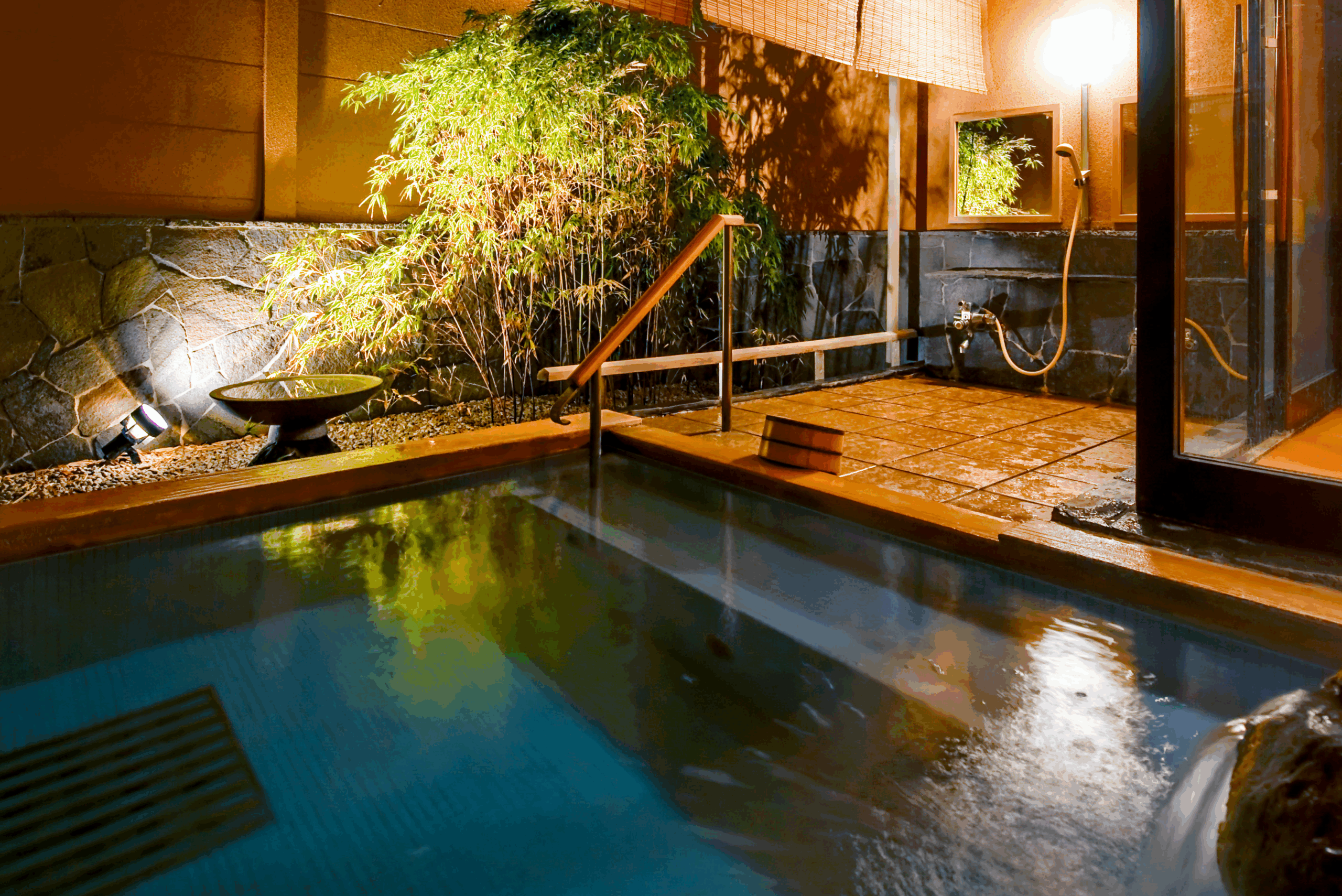 湯量溢れる天然温泉と四季の花が彩りをそえる庭園を眺めながらどうぞ。